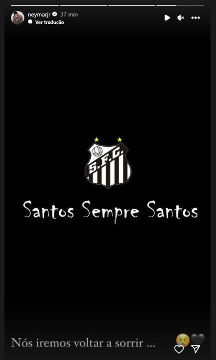 O atacante da seleção brasileira e do Al Hilal, da Arábia Saudita, publicou uma foto com um fundo preto e com os dizeres: “Santos sempre Santos… Nós iremos voltar mais fortes”, afirma Neymar.