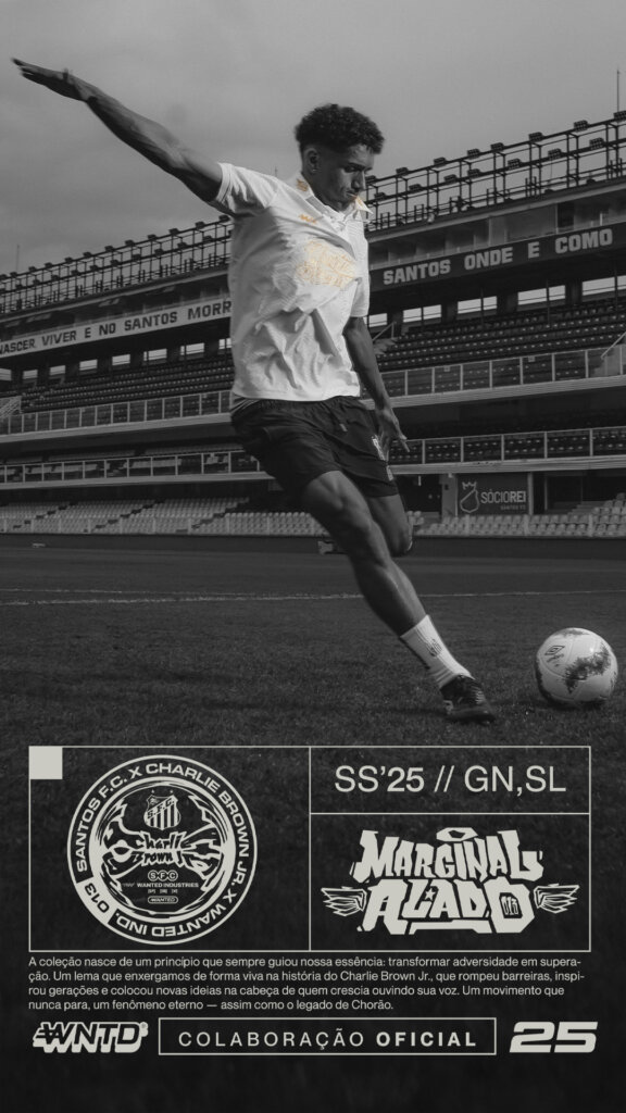 Santos FC, Wanted e Charlie Brown Jr. se encontram em uma tríade que honra a contracultura, a resiliência e a paixão que atravessa décadas: música, futebol, skate e o espírito hustler das ruas, para apresentar uma das colaborações mais significativas da história.