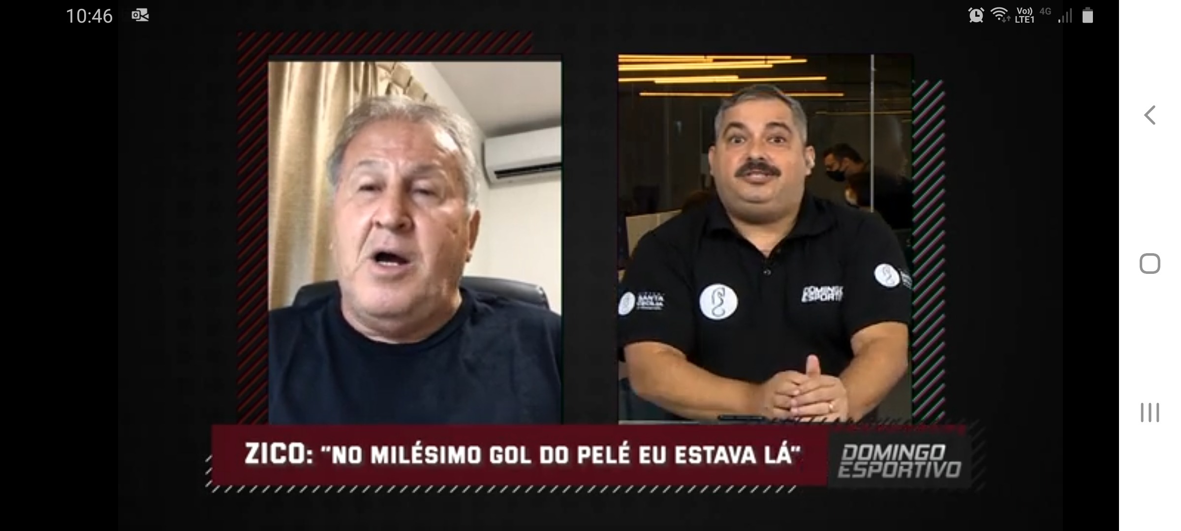 “No dia do milésimo gol do Pelé, eu estava lá! Torcendo pro Santos, doido pra sair o gol. Torcendo muito para não acontecer nos outros estádios e acontecer no Maracanã”.