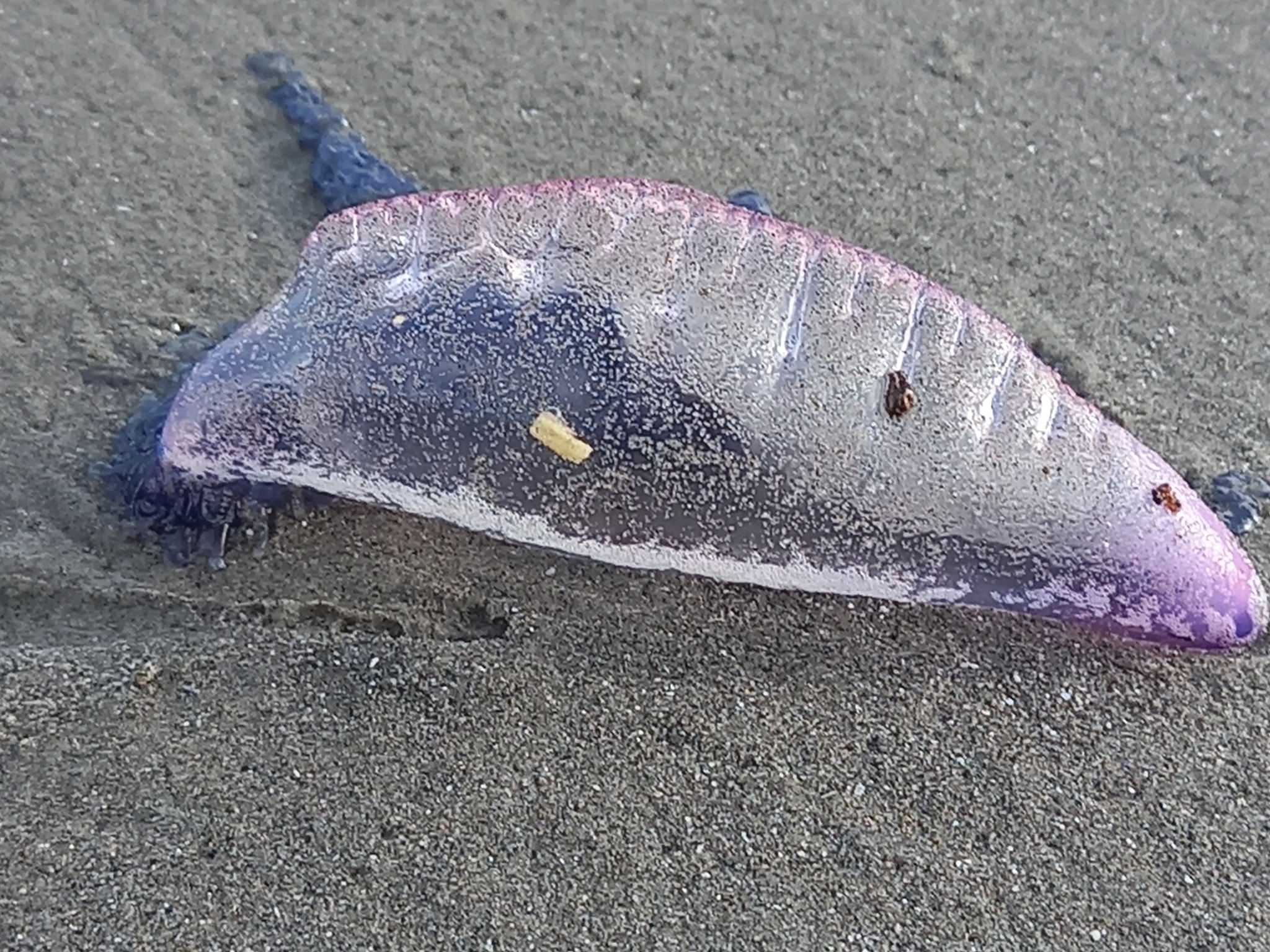Caravelas-portuguesas foram vistas na Praia do Itararé, em São Vicente, no último domingo (28). Uma banhista compartilhou os registros nas redes sociais, confundindo a espécie com águas-vivas.