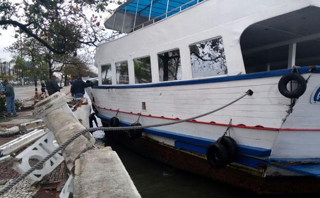 O barco está preso a uma árvore próxima ao local da colisão. Algumas avarias foram identificadas na embarcação, que no momento é um “ponto turístico” para quem passa pela avenida Saldanha da Gama.