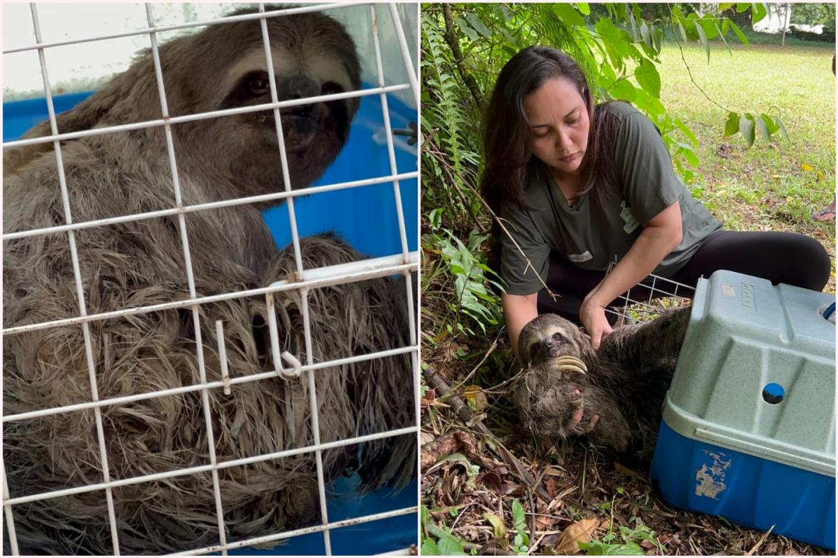 Bicho-preguiça atropelado se recupera e volta para seu lar no Morro da Nova Cintra