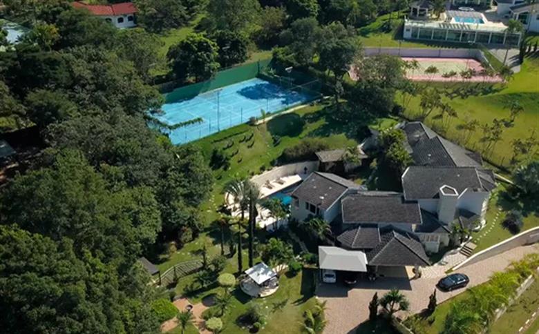 Ao todo, com base na publicação, são nove suítes, cinco salas, lavabo, cozinha, despensa e 14 vagas de garagem. Também existe na propriedade espaço gourmet com churrasqueira e adega e um pomar com árvores frutíferas.