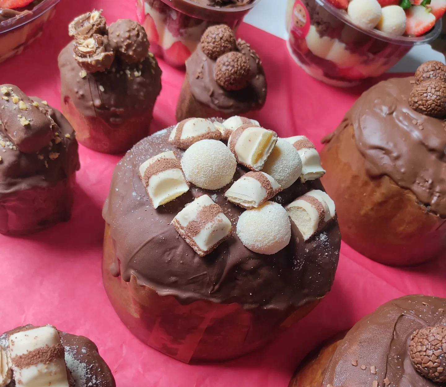 Seus chocotones trufados podem variar dependendo do tamanho (mini e 1 kg) e seus sabores, como o brigadeiro (R$ 22,00 e R$ 65,00), ninho (R$ 22,00 e R$ 65,00), paçoca (R$ 22,00 e R$ 65,00), ninho com brigadeiro (R$ 65,00), Kinder Bueno (R$ 22,00 e R$ 90,00) e Ferrero Rocher (R$ 22,00 e R$ 90,00). Pontuando, que a partir de 5 unidades do mini, um sai por R$ 20,00
