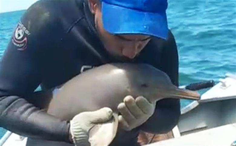 "É gratificante salvar uma vida", diz pescador que resgatou filhote de golfinho preso em rede; vídeo