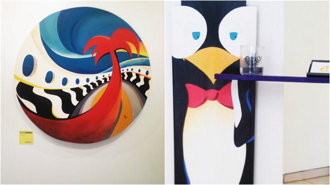 São sete obras em óleo sobre tela, quatro pinturas em látex sobre o papel e três intervenções. Dentre os destaques, há uma tela redonda que retrata a cidade de Santos. “Amo o município e a obra representa o sentimento que tenho por ele. É a que faz mais sucesso com o público”, diz.