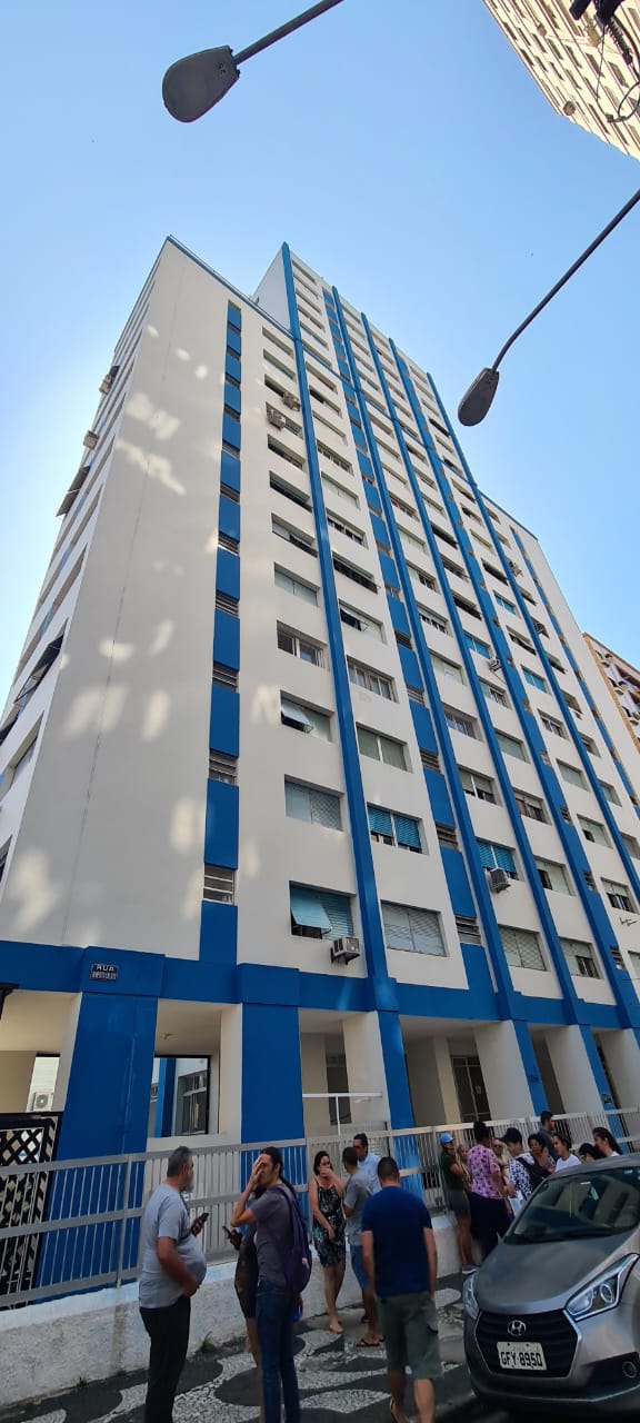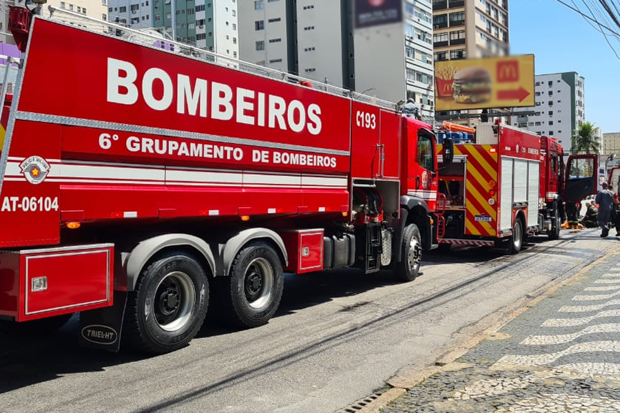 O perímetro próximo ao edifício, que fica no cruzamento da Av. Presidente Wilson com a Rua Benedito Calixto, foi isolado por precaução. O prédio precisou ser evacuado por causa do incêndio.