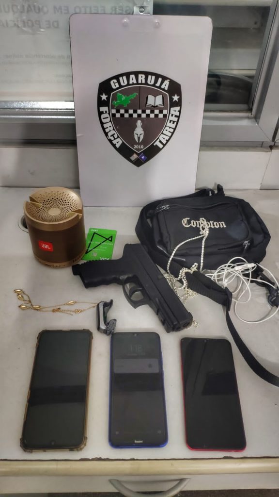 Uma quadrilha foi presa em Guarujá por suspeita de roubar turistas próximo à hotéis na Enseada, em Guarujá. A prisão foi realizada pela Força Tarefa da cidade, que apreendeu três celulares e um simulacro de arma de fogo, entre outros itens.