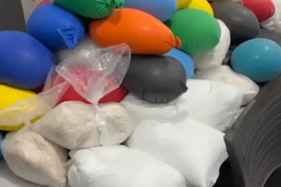 Os policiais encontraram uma carabina 9mm carregada com 12 munições íntegras no armário da sala, e ainda balanças de precisão, seladora industrial, prensa industrial, sílica, “eppendorfs”, frascos vazios, butano, misturas, embalagens para acondicionamento das drogas, mochilas, dentre outros materiais destinados à traficância.