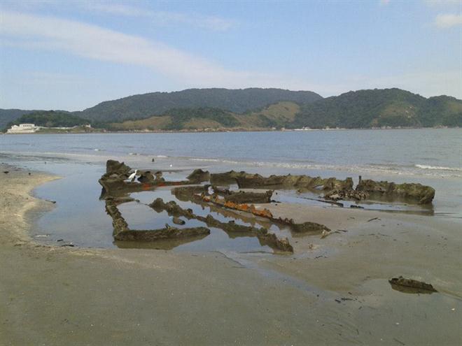 Os destroços do Navio Recreio ficaram àmostra na manhã desta quarta-feira (16) na praia de Santos, no bairro da Ponta da Praia. As imagens foram registradas pelo internauta Aldo de Aguiar.A embarcação encalhou na praia da cidade no ano de 1971.