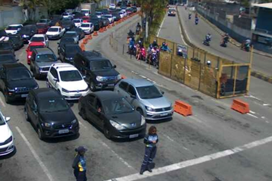 Há congestionamento na Rodovia Padre Manoel da Nóbrega, na pista oeste, do km 271 ao km 274, e na pista leste, do km 276 ao km 274, por causa do alto fluxo de veículos.