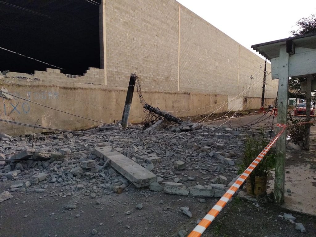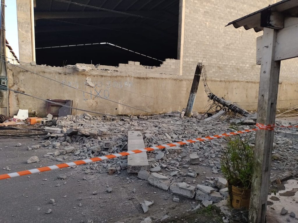 Os ventos fortes, causados por uma intensa massa de ar polar que chegou à região da Baixada Santista, provocaram a queda do muro de um galpão e um poste em Praia Grande, na madrugada desta quarta-feira (18). Apesar do susto, ninguém se feriu na ocorrência.
