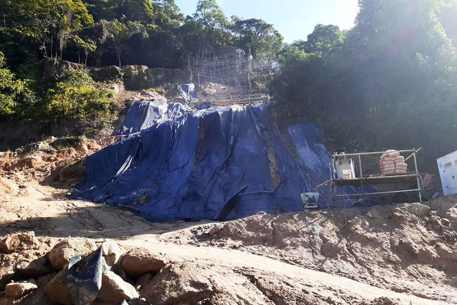 “Já a contenção será feita por meio de grampeamento de solo e tela, sendo a parte superior da área de encosta revestida com concreto projetado e a parte inferior, com tela e grama.”
