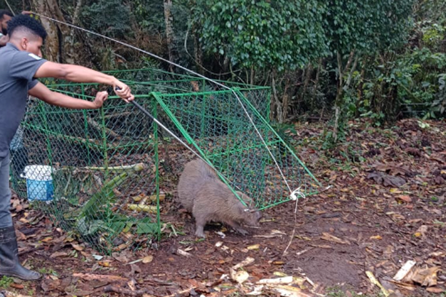Polícia Ambiental resgata capivara vítima de caça ilegal em Guarujá