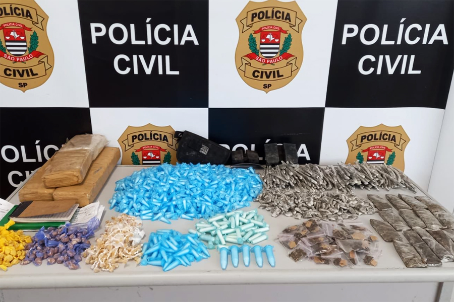Em minuciosa busca em uma área de vegetação, os policiais encontraram um duto e desenterraram tubos contendo 1.016 porções de cocaína (1.420 gramas), 542 pedras de craque (220 gramas), três tabletes de maconha e 513 porções da mesma droga (4.100 gramas).
