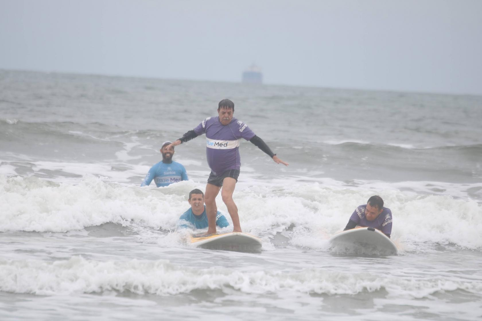 O recomeço veio com o tempo – e com o passar das ondas do mar. Guilherme conheceu a Escola de Surfe Adaptado, no Posto 3, há 9 anos, e, com ela, redescobriu a alegria e o melhor de viver em Santos. Mas não foi sozinho. Primeiro, Sidney apenas acompanhava, mas logo os professores da escola o incentivaram a participar. “Começaram a brincar comigo: ‘E aí, seu Sidney, vamos lá?’ Me deram uma prancha e me ajudaram. Agora, estou fazendo uma coisa que nós adoramos, especialmente ele. E para mim, é satisfatório”, conta, sorrindo.