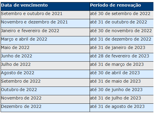 A norma foi estabelecida pela deliberação 243 do Conselho Nacional de Trânsito (Contran) que definiu um cronograma para CNHs que tiveram vencimento entre 1º. de março de 2020 e 31 de dezembro de 2022. O período para a regularização é feito com base no mês de vencimento do documento. Por exemplo, CNHs vencidas entre setembro e outubro do ano passado deverão ser renovadas até 30 de setembro de 2022.