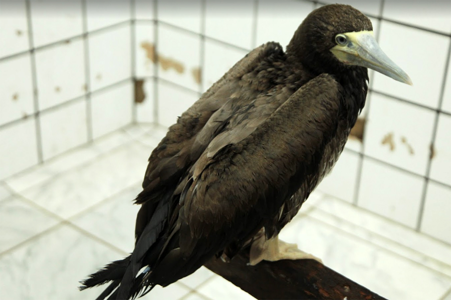 Os novos moradores foram encontrados encalhados em uma praia em Angra dos Reis. Foi constatado que o atobá havia sofrido uma fratura na cauda e, por isso, não conseguiria mais levantar voo. “As aves, quando voam, uma das primeiras coisas que elas fazem é abrir a cauda em leque para dar estabilidade no voo. Os técnicos tentaram soltar, estimulá-la a voar e perceberam que ela não conseguia fazer isso. Então o animal perdeu a principal função dele, que é voar, para buscar alimento e fugir”, conta o biólogo.