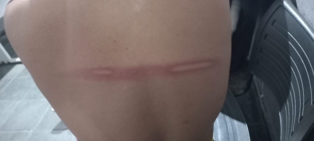 Vergão causado pelo golpe nas costas de Jhonnatan