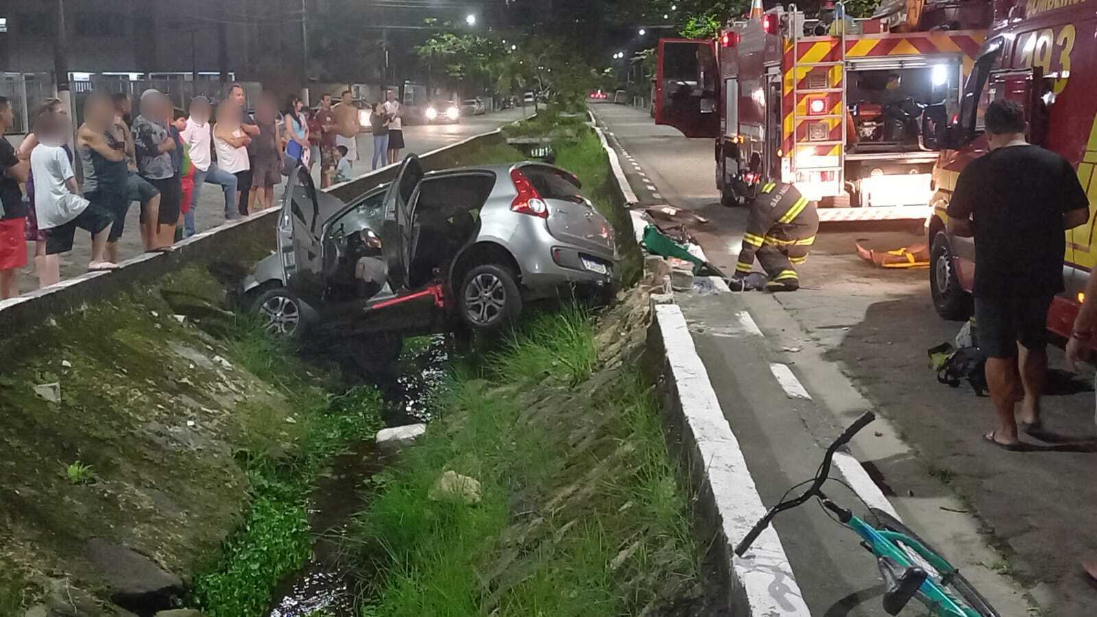 Um motorista perdeu o controle da direção e caiu no canal da rua Miguel Alonso Gonzalez, em Guarujá.