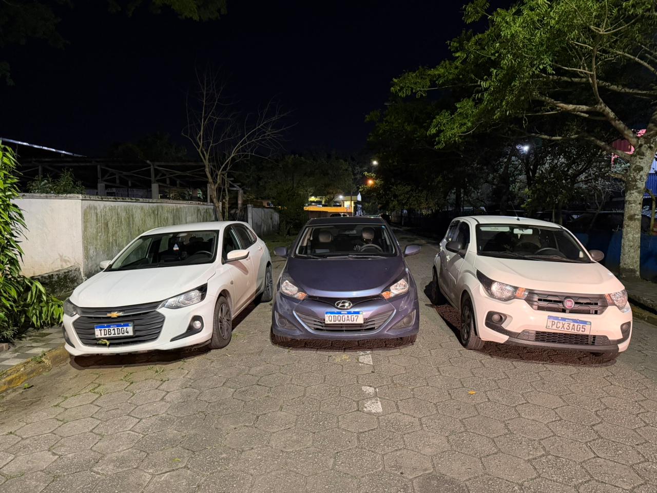 O Mobi ostentava placa de outro veículo e ainda terá a sua procedência apurada, enquanto o HB20 e o Onix são produtos de furto. Com a condução dos acusados à delegacia, os investigadores localizaram um caminhão durante a madrugada.