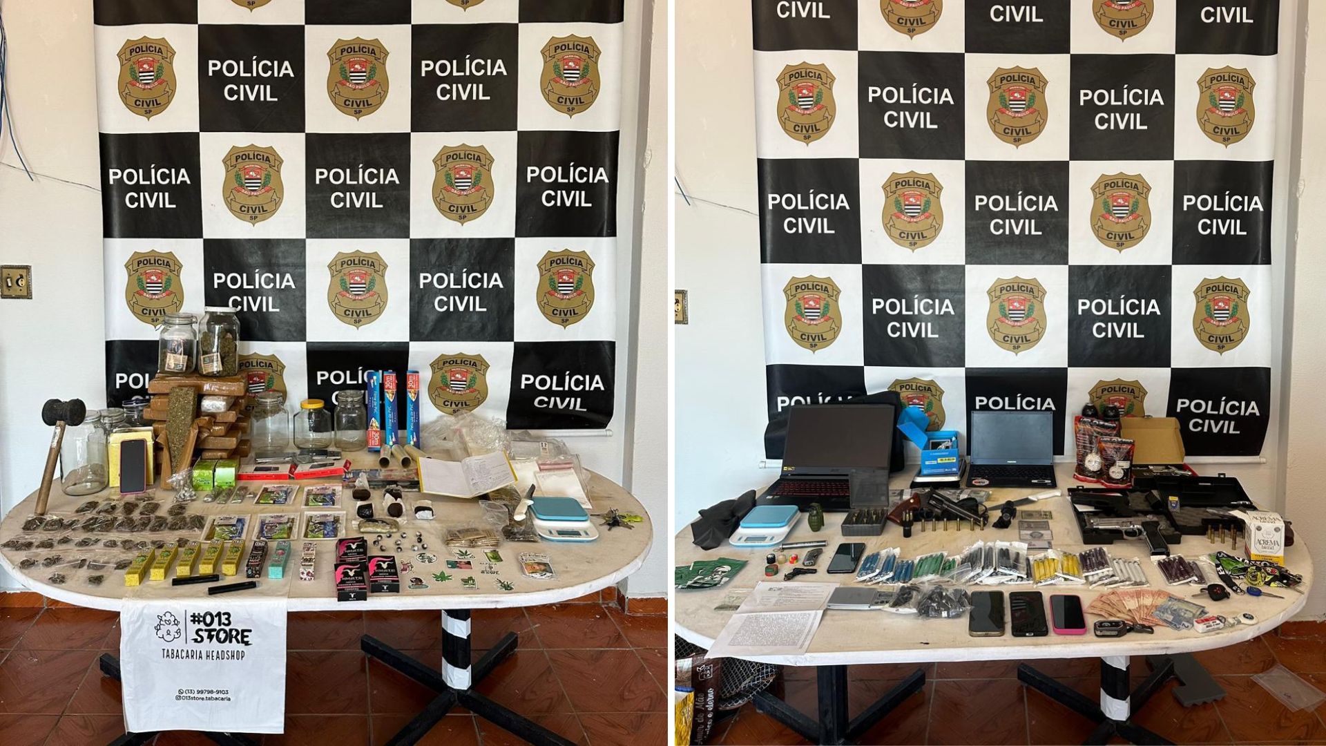 As investigações apontam que o grupo atua no tráfico de drogas há pelo menos cinco anos. Durante a operação, a polícia apreendeu três armas de fogo – uma delas com numeração raspada –, diversas munições, réplicas de armas de airsoft, três máquinas de cartão, dois notebooks, quatro celulares, um caderno com anotações do tráfico, quatro balanças de precisão, potes e sacos com resquícios de drogas, além de facas utilizadas no manuseio dos entorpecentes.