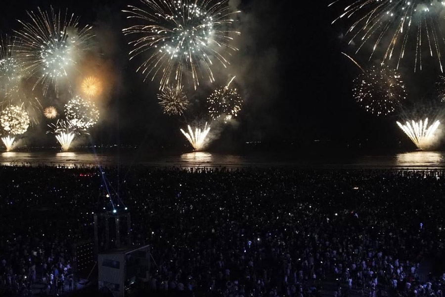 De baixo ruído, conhecidos como fogos de vista, os artefatos priorizam os efeitos visuais e garantem maior conforto sonoro. O arranjo das balsas permitirá que todo o público ao longo dos 7 km de extensão da praia visualize o show completo, que terá uma composição contínua e equilibrada no horizonte.